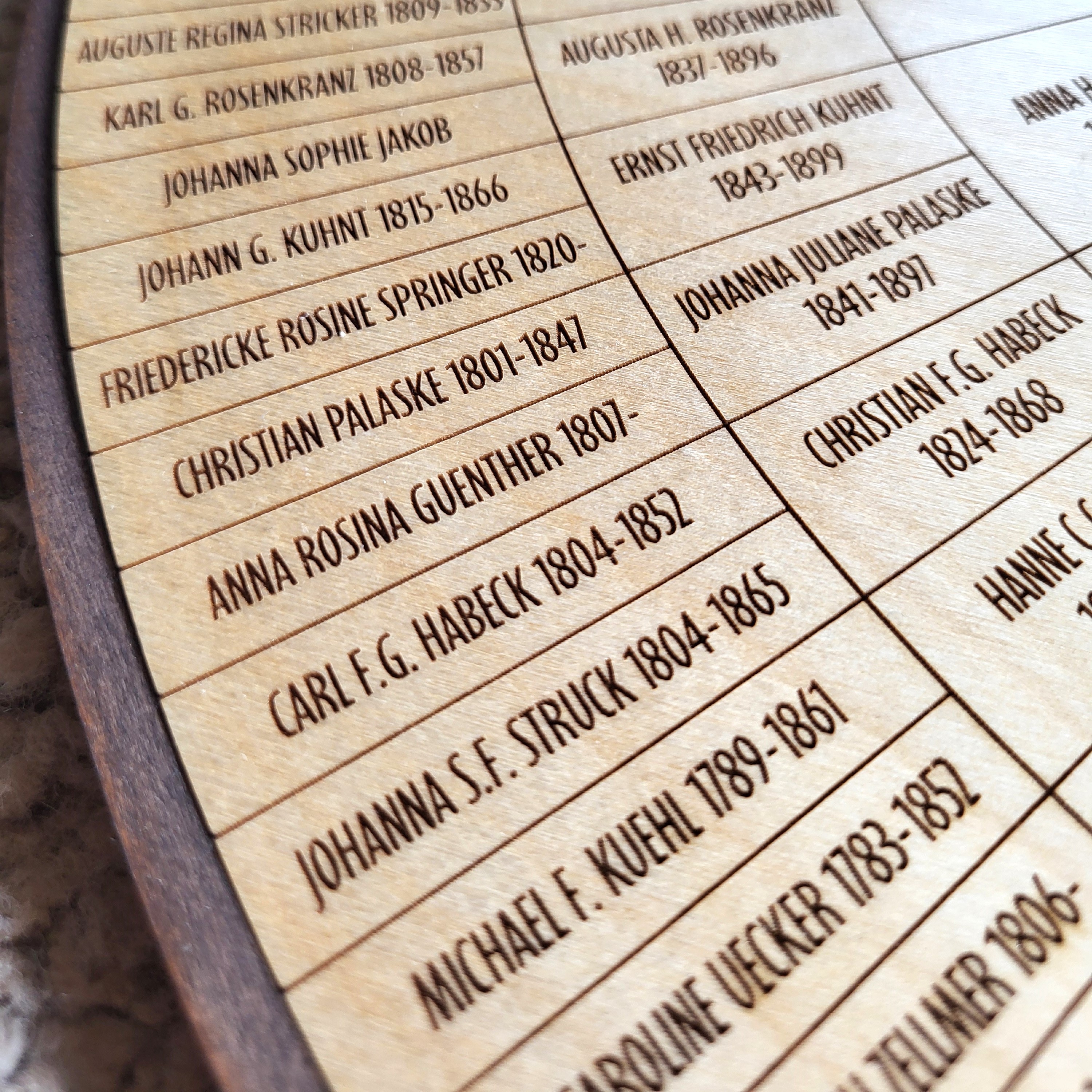Your own family tree laser engraved to display in your home! This tree displays 7 generations. There is also a listing for a 16″ five generation tree if you don’t quite have enough information for seven generations.